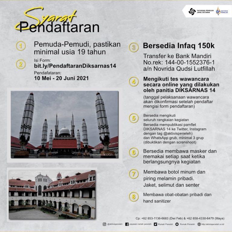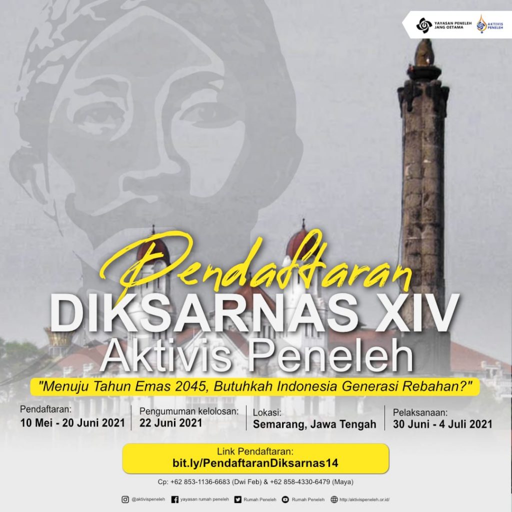 Aktivis Peneleh akan menyelenggarakan Pendidikan Dasar Nasional (Diksarnas) ke-14 (XIV) pada 30 Juni-04 Juli 2021 di Semarang, Jawa Tengah. Diksarnas XIV yang akan berlangsung di masa pandemi ini, mengusung tema “Menuju Tahun Emas 2045, Butuhkah Indonesia Generasi Rebahan?” Yang mana merupakan upaya pengkaderan guna “menyiapkan generasi hebat Indonesia di masa mendatang,” tutur Fadhir.
