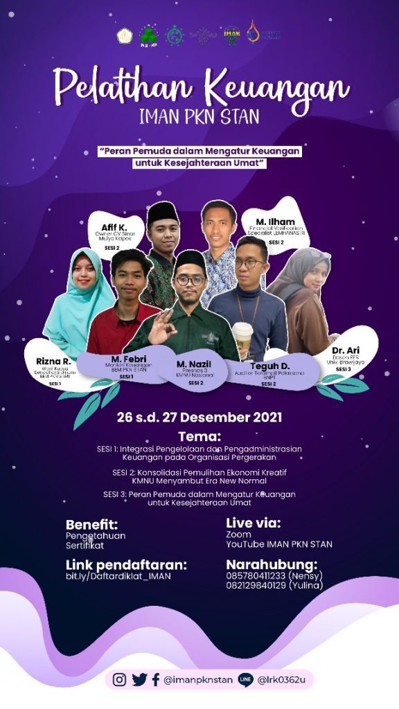Dr. Ari Kamayanti selaku narasumber sesi 3 Diklat Pelatihan Keuangan yang diadakan Ikatan Mahasiswa Nahdhatul Ulama (IMAN PKN STAN), berusaha menyadarkan kembali perihal konsep kesejahteraan dan kedermawanan. “Bukan kemiskinan yang harus dihapus, tapi mentalitas takut miskin,” terang Kepala Yayasan Peneleh Jang Oetama ini.